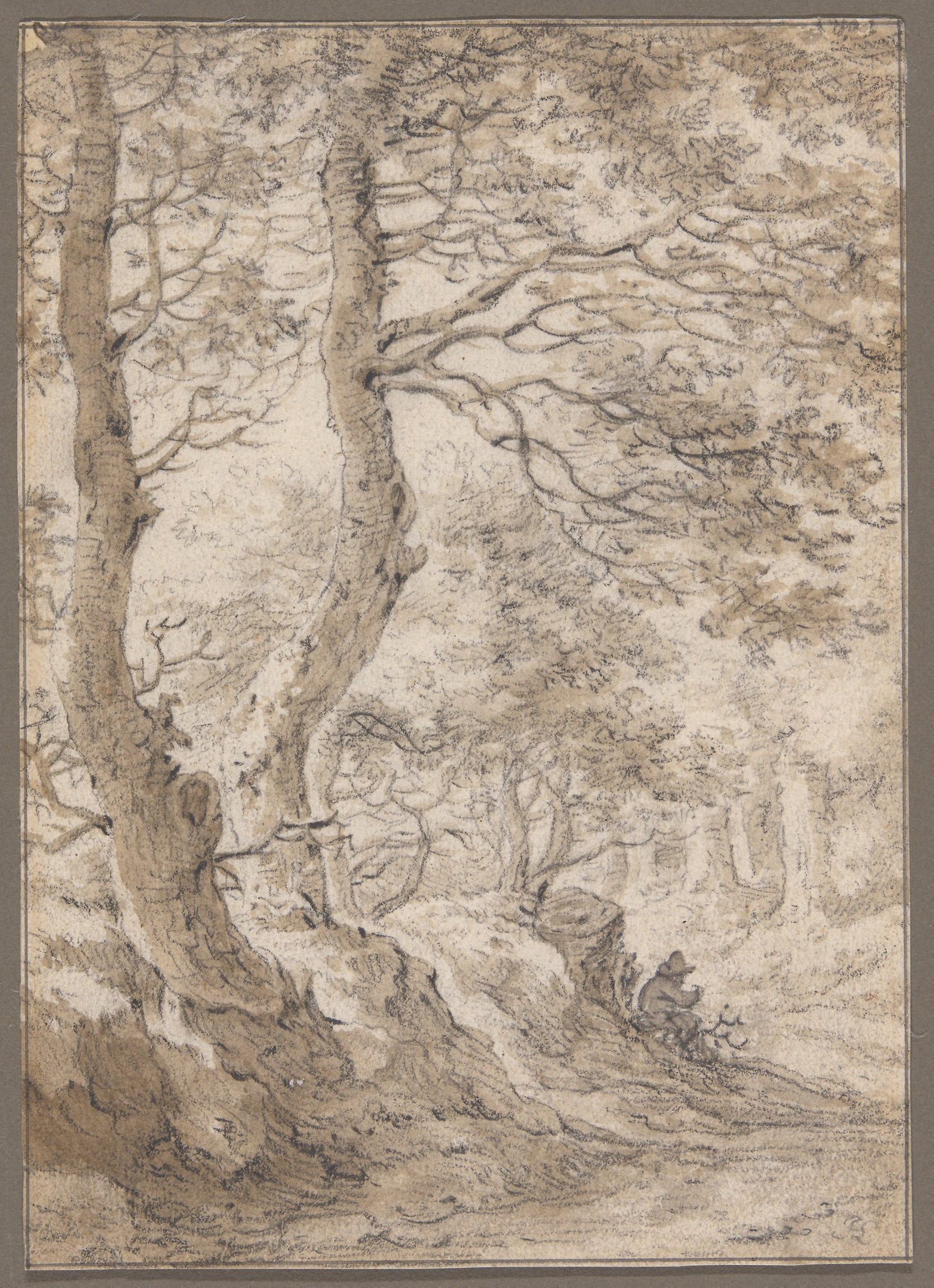 A Forest Interior, with a Seated Figure: Herman Saftleven,16x12"(A3) Poster