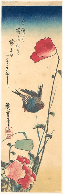 ,Bluebird and Flowering Poppies 1832–34-Utagawa Hi,16x12"(A3) Poster