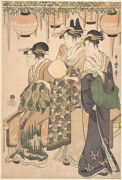 ,Courtesans Beneath a Wisteria Arbor c1795-Kitagawa U,16x12"(A3) Poster