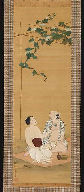 ,Enjoying the Evening Cool under a Gourd Trellis early ,Japan ukiyo-e Period Image,16x12"(A3) Poster