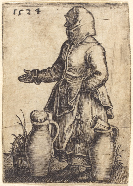 Peasant Woman with Two Jugs by Barthel Beham (German, 1502 - 1540), 16X12"(A3)Poster Print